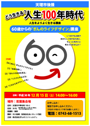 「(60歳からの)ぎんのライフデザイン研修」を開催します。 日時:2018年12月15日(土)16:00〜16:00 場所:奈良県天理市 若葉集会場 住所:奈良県天理市平等坊町193-2 定員:30名(最少開催人数4人に […]